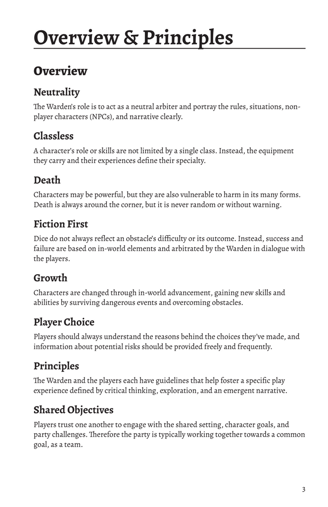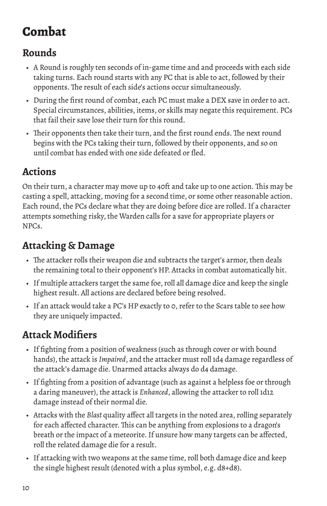 This "barebones" version of Cairn is presented art-free (aside from the cover and character sheet) and is released under CC-BY-SA 4.0.