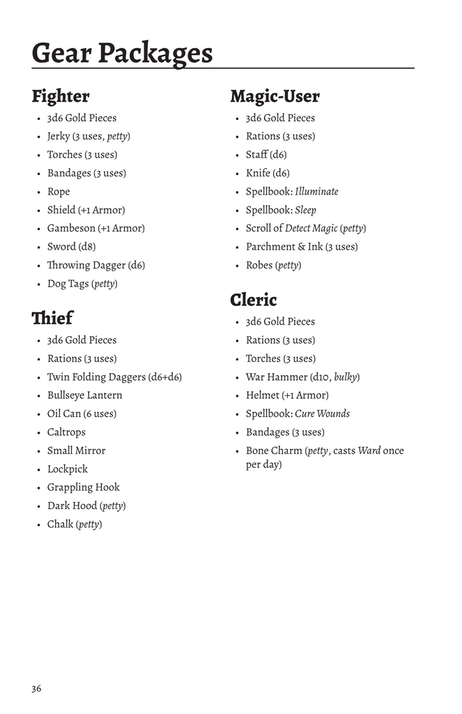 The rules and procedures match those in the Cairn Second Edition Player’s Guide, but this version removes the implied setting and structured creation process. It assumes a generic fantasy world, embracing full randomness, much like the original Cairn. It retains full compatibility with Cairn Second Edition adventures but offers an even more minimal, flexible framework for old-school play.