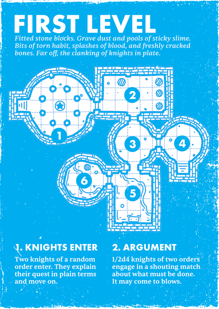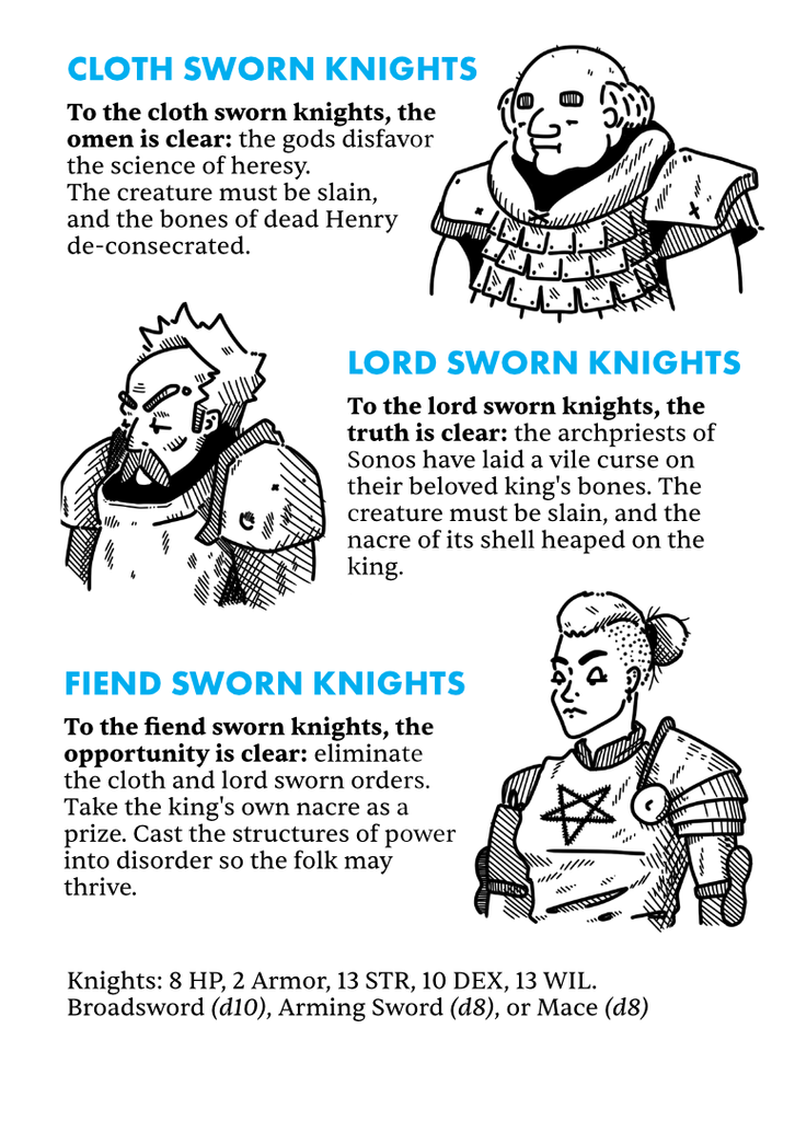 Now, a river of slime pours from the crypts. Tales spread of a shelled serpent. Knights of the realm gather to face the beast, but disagree on how to proceed.
